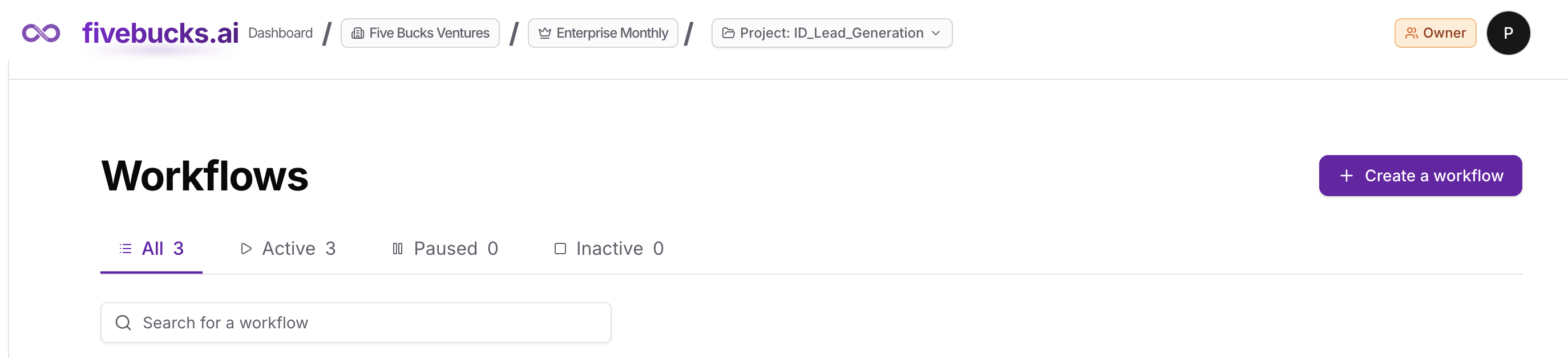 From your dashboard, click Lead Generation in the sidebar, then click Workflows.