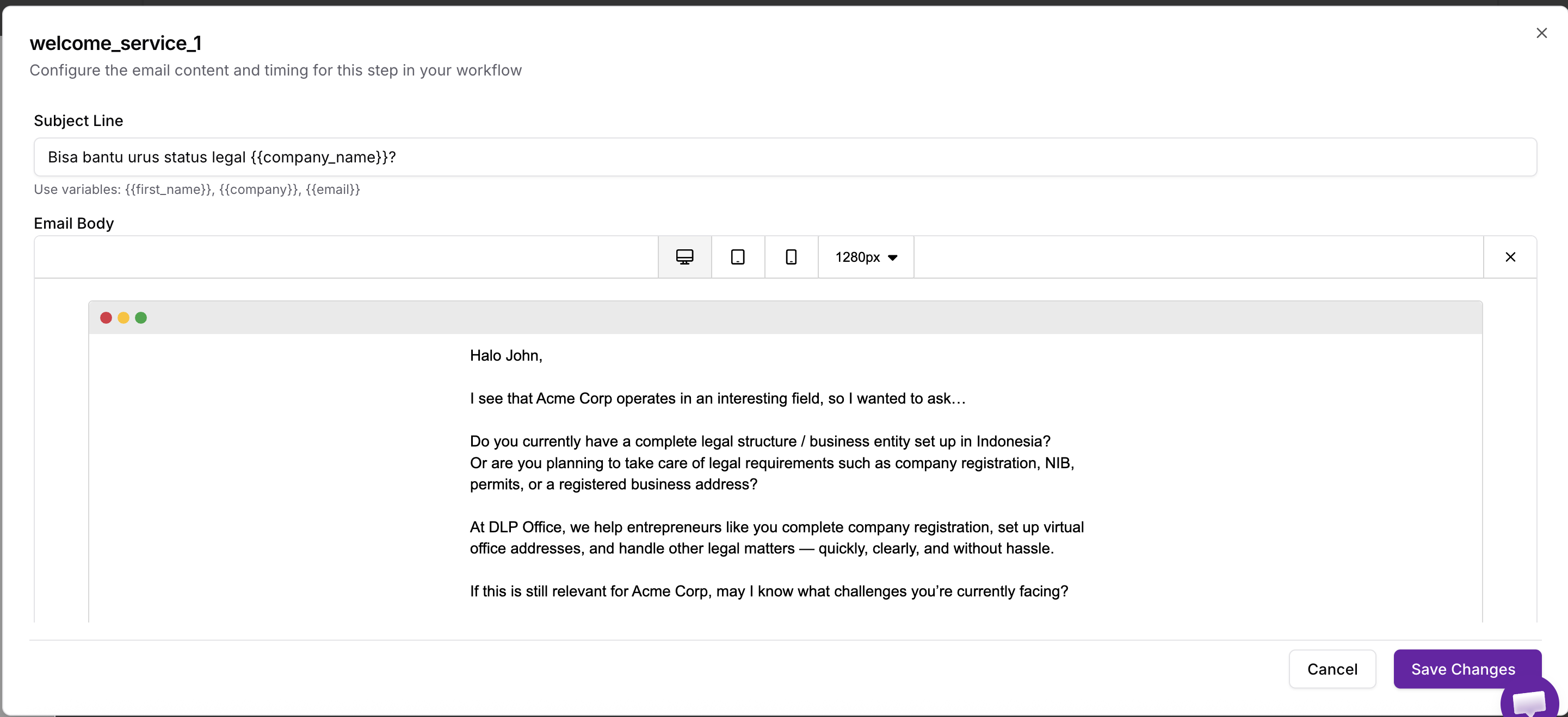 Insert variables that automatically replace with lead-specific data: