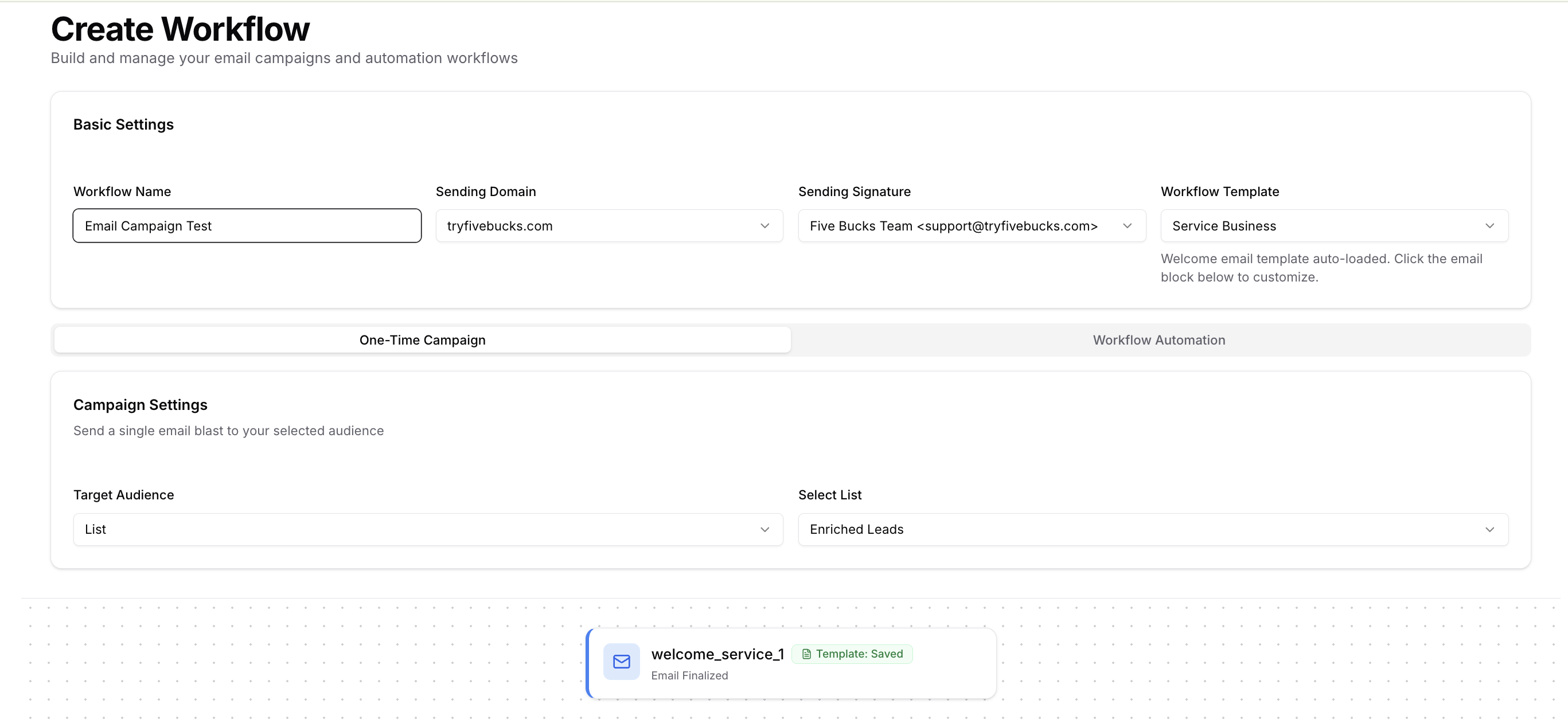 - Campaign Name: Workflow name you entered