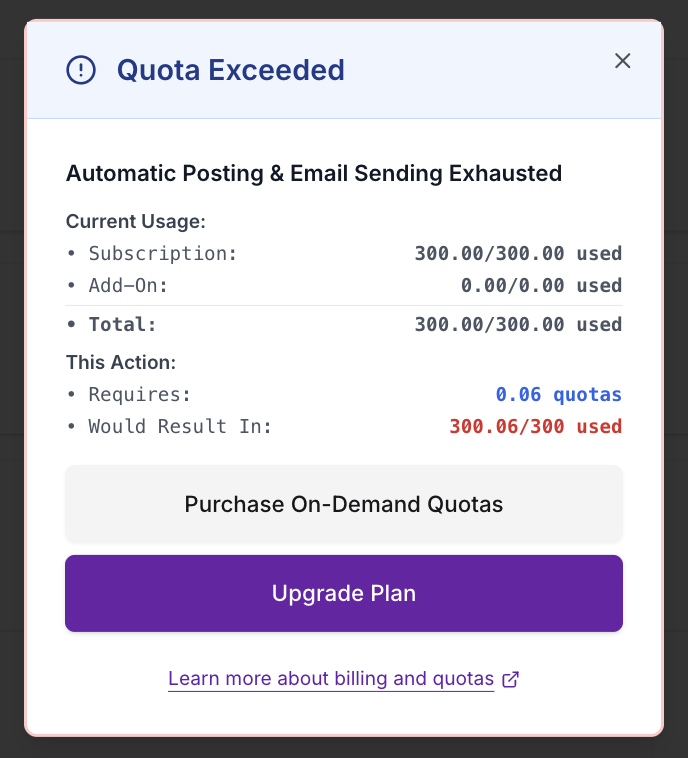 - Click "Upgrade Plan" link in quota tooltip